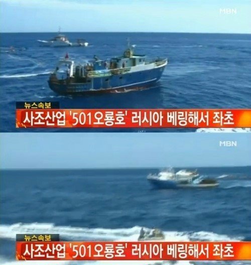 1일 오후 1시40분쯤(한국시간) 사조산업 원양어선인 1,753t급 명태잡이 트롤선 ‘501오룡호’가 러시아 극동 추코트카주 인근 서베링해에서 기상 악화로 침몰했다.