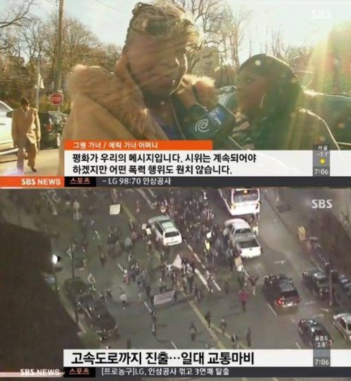 한편 이번 시위는 미주리 주 퍼거슨에서 지난 8월 백인 경관의 총격에 비무장 상태의 흑인 청년이 사망한 데 이어 문제의 경관이 불기소 처분을 받은 ‘퍼거슨 사태’를 계기로 인종차별 논란이 불거졌다.