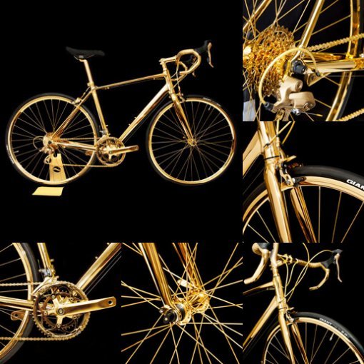 24K 순금을 입힌 이 휘황찬란한 자전거의 가격은 25만 파운드(약 4억3200만 원). 다이아몬드 장식은 밤에도 빛을 발하고, 안장이나 타이어 등 무엇 하나 최고급이 아닌 부속품이 없다.