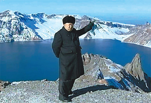 지난달 말 백두산에 오른 모습이 20일 공개됐다. 김정은이 북한에서 ‘혁명의 성산’으로 꼽히는 백두산에 오른 것은 자신의 시대가