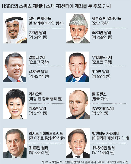 영국을 대표하는 은행인 HSBC홀딩스 산하 프라이빗뱅킹(PB) 스위스 지부가 전 세계 권력자와 부자들의 돈을 비밀리에 관리해주면서 탈세 컨설팅에까지 적극 나선 사실이 드러났다.