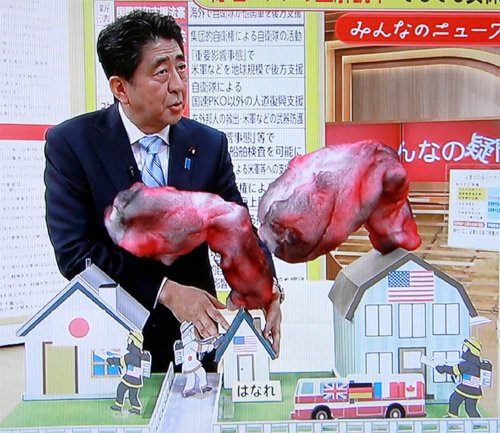 아베 총리의 이날 출연은 후지TV의 특별 배려에 따른 것이었다. 아베 총리는 이달 6일 자민당 간부회의에서 안보법제에 대해 국민의 이해가 확산되지 않는 것과 관련해 “사실은 TV에 나서고 싶은데 아무도 불러주지 않는다”고 불평했다. 모처럼 출연이 성사된 만큼 아베 총리는 안보법제를 불 끄는 소방수에 비유하는 모형을 들고 나와 직접 설명하는 등 안보법제 강행으로 악화된 지지율을 되돌리기 위해 총력을 기울였다.