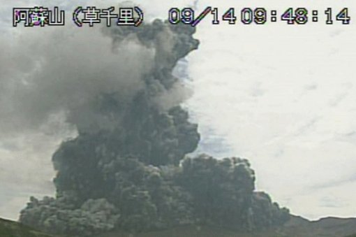 일본 교도통신과 NHK는 아소산 화산 폭발로 인해 연기(분연)가 화구로부터 2000m 상공까지 치솟았고, 화구 주변에 분석이 내리고 있다.