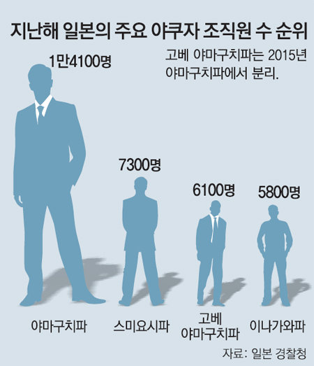 일본 경찰은 이날 벌어진 3개의 사건이 지난해 8월 일본 최대 야쿠자 조직인 야마구치파에서 고베 야마구치파가 분리돼 나오면서 두 조직 간의 수도권 내 주도권 다툼이 격화된 결과로 보고 있다. ○ 일본 최대 야쿠자 조직 ‘분열’