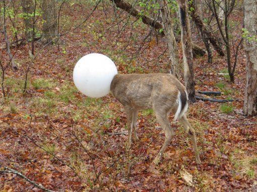 미국 뉴욕 주(州) 외곽의 한 숲에서 가로등 전구 안에 머리가 낀 야생 사슴 한 마리가 발견됐다. 이 사슴은 해당 주 환경보전국(이하 DEC)의 도움으로 무사히 구출됐다.