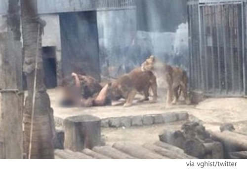 사자 2마리, 우리에 나체로 뛰어든 남자 공격 후 사살돼