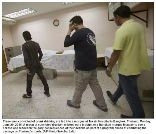 태국 정부는 음주운전자를 줄이기 위해 지난 4월 ‘영안실 봉사형’이라는 새로운 법령을 만들었다.