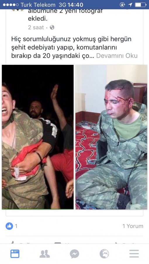 터키 군부 쿠데타에 가담했다가 투항한 군인을 향해 시민들이 무차별 폭행을 가하는 장면이 담긴 사진과 동영상이 터키 소셜네트워크서비스(SNS)에서 급속도로 퍼지고 있다. 일부 사진에는 시민에게 참수당한 군인의 모습까지 고스란히 담겨 충격을 주고 있다.
