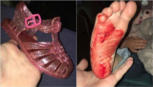 최근에서야 그 젤리슈즈를 처음 신게 된 미아 양은 신발을 착용한 지 약 10분 만에 끔찍한 결과를 맞이했다. 제시카는 딸의 오른쪽 발바닥 상당한 부분에 피가 묻은 것을 확인한 뒤 충격에 빠졌고, 또 다른 피해자들이 나오지 않길 바라는 마음으로 이후 자신의 소셜미디어 계정에 해당 사진을 공개했다.