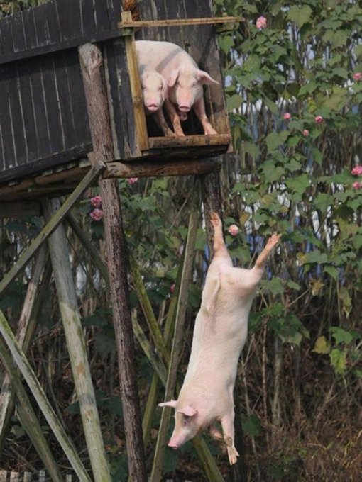 영상을 보면 높은 다이빙대로 우르르 몰려간 돼지들이 차례대로 물 속으로 뛰어든다. 우선 한 마리가 물 속에 들어가 수영을 하고 있는 사이, 뒤에 있던 돼지가 물을 내려다보며 잠시 주저하다 뛰어내린다. 돼지들의 이 이색적인 ‘체력 단련’은 현지 소셜미디어 웨이보에서 눈길을 모으며 화제에 올랐다.