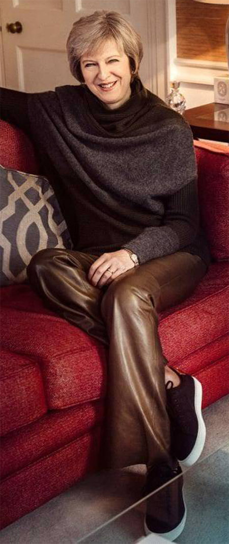 최근 불거졌던 총리의 ‘바지 게이트’를 비꼰 것이다. 메이 총리는 지난달 영국 선데이타임스 기자와 인터뷰하는 자리에 995파운드(약 146만 원)짜리 가죽바지를 입고 나왔다(사진). 여성인 니키 모건 전 교육부 장관은 “난 웨딩드레스 말고는 그렇게 비싼 것을 입어본 적이 없다”고 꼬집었다.
