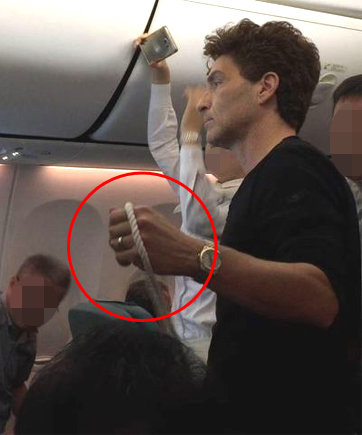 그러면서 포승줄을 들고 승무원을 제압을 돕고 있는 남편의 사진을 여러장 찍어 올렸다.