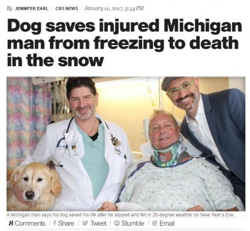 한밤중 눈길에서 목이 부러지는 사고를 당해 홀로 남겨진 남성이 반려견 덕에 살아남은 이야기가 전해져 사람들의 가슴을 훈훈하게 했다.