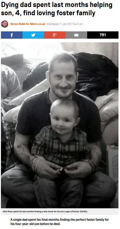 최근 영국 메트로는 암으로 세상을 떠나기 직전까지 아들에게 새 가족을 찾아주려 했던 닉 로즈(남·40)의 사연을 전했다.
