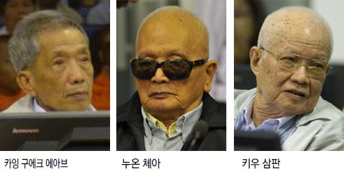 유엔과 캄보디아 정부가 1997년부터 2003년까지 수년간의 협상 끝에 설치한 재판소는 2006년 크메르루주 정권의 핵심 인물 세 명을 법의 심판대 위에 세웠다. 악명 높았던 투올슬렝 수용소장을 지낸 카잉 구에크 에아브(74)는 2014년 최종심에서 종신형을 선고받았고, 누온 체아 전 공산당 부서기장(90)과 키우 삼판 전 국가주석(85)은 지난해 11월 역시 종신형을 선고받았다. 정권 1인자 폴 포트는 전범재판소가 설치되기 전인 1998년에 숨졌다.