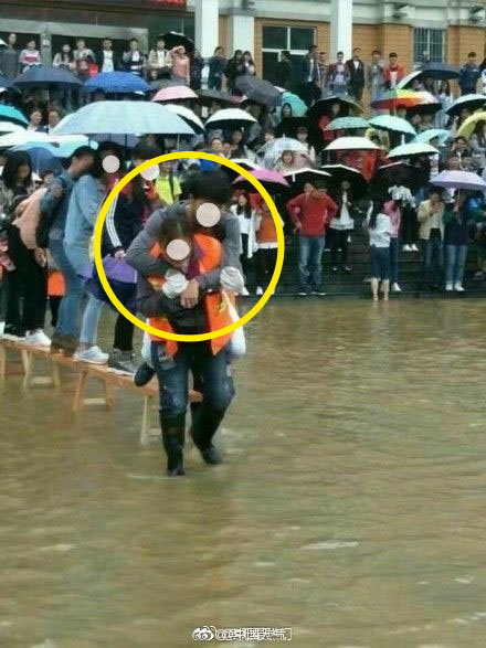 중국의 젊은 남녀 대학생들이 중년의 여성 환경미화원 등에 업혀 폭우로 침수된 지역을 건너는 모습을 담은 사진이 세계적 조롱거리가 됐다.