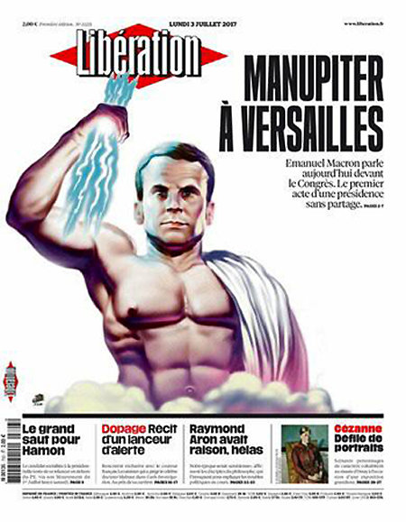 ‘주피터 마크롱’ 에마뉘엘 마크롱 프랑스 대통령을 그리스로마신화에 나오는 신 ‘주피터’로 표현한 현지 일간 리베라시옹의 3일자 1면. 리베라시옹 웹사이트 캡처
