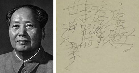 마오쩌둥(毛澤東·1893∼1976) 전 중국 국가주석이 말년에 남긴 친필 메모가 영국 런던 소더비 경매에서 70만4750파운드(약 10억3700만 원)에 낙찰됐다고 11일 영국 BBC가 보도했다. 낙찰가는 당초 예상가(6만∼8만 파운드)의 10배 수준으로 치솟았다.