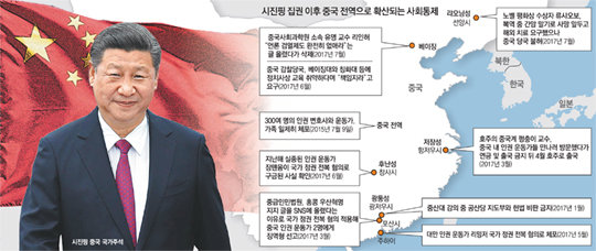 두 사건은 2012년 시진핑(習近平) 국가주석 집권 이후 중국 전역을 휩쓸고 있는 사회 통제 강화에 대한 반작용을 대표한다. 영국 BBC방송 중문판은 “시진핑 정부가 사회 안정과 국가 안보, 범죄 소탕을 내세워 민주화 운동가들에 대해 대대적인 탄압을 진행하고 있다”고 전했다. 시 주석이 올해 10월 제19차 공산당 전국대표대회(전당대회)에서 장기 집권 기반을 마련하기 위해 체제 위협 요소의 확산을 강하게 통제하고 있다는 분석도 나온다.