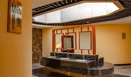 중국 구이저우성 완펑린 풍경구 관광구역에 만들어진 초호화 화장실 내부. 고급 대리석을 비롯한 값비싼 건축자재를 사용해 건설했다. 사진 출처 바이두닷컴