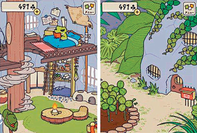 중국 젊은이들 사이에서 최근 폭발적 인기를 얻고 있는 스마트폰 게임 ‘여행개구리’. 청개구리가 집에서 시간을 보내다 여행을