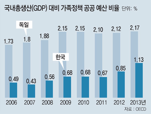 독일에서는 부모가 동시에 육아를 할 수 있도록 아이가 돌봄이 필요한 특정 기간 동안 부모 근로시간을 단축한 후 점점 늘려 가는 ‘가족 근로시간’ 개념이 확산되고 있다. 실제 독일 정부는 2007년부터 여성의 유급 육아휴직 기간을 축소하는 대신 남성이 육아휴직을 쓸 경우에만 부부에게 유급 육아휴직을 2개월 더 주는 방식으로 남성들의 육아휴직 사용을 장려하고 있다. 실제 2006년 3.5%에 그쳤던 남성의 육아휴직은 2014년 34.2%로 늘었고 출산율은 1.5명까지 상승했다.