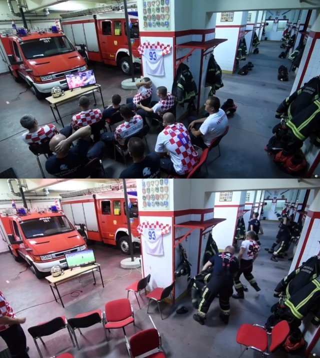 보도에 따르면, 이날 자그레브 소방본부 소속 소방관들은 크로아티아와 러시아의 승부차기를 숨죽이며 지켜보고 있었다.