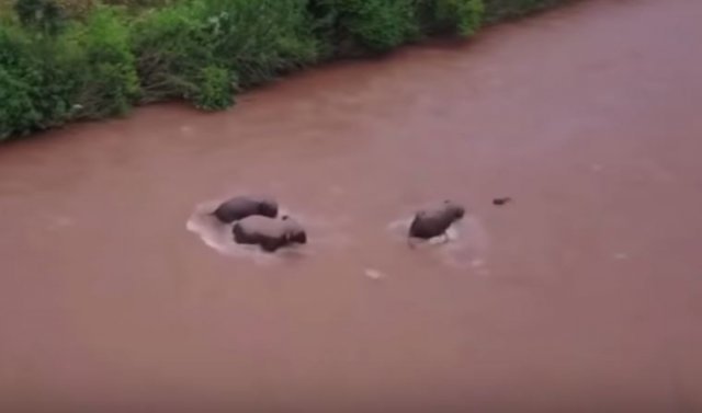 한 무리의 야생 코끼리들이 협심해서 급류에 떠내려가는 새끼 코끼리를 구출하는 모습이 포착됐다.