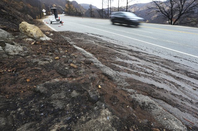 캘리포니아 산불 지역 중 가장 혹심한 피해를 입은 말리부 시는 여러 곳에서 소규모 진흙 산사태와 쓰레기더미 유입이 예상된다면서 경고를 발령했다. 산타모니카 산맥에서는 여러 곳에서 바위가 도로위로 굴러 떨어지는 낙석 사고가 일어나기도 했다.