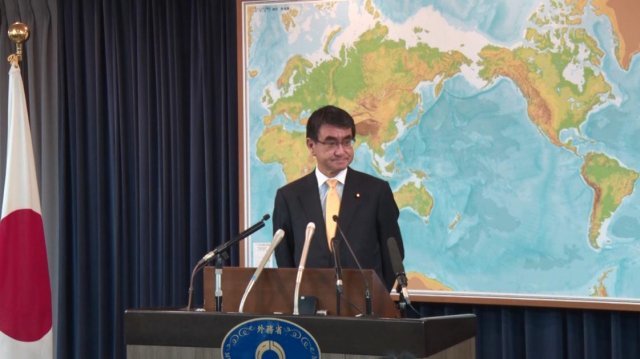 이에 대해 고노 외상은 4일 일본 외무성에서 가진 정례 기자회견에서 “특별히 할 말이 없다”면서도 “일본으로서는 한국이 (강제징용에 대한 한국 대법원의 판결 등) 국제법 위반을 하루 빨리 시정했으면 좋겠다고 말하고 싶다”고 밝혔다. 고노 외상은 10월 30일 신일철주금(신일본제철), 지난 달 29일 미쓰비시중공업 등 일본 전범 기업의 강제징용에 대한 한국 대법원의 판결과 관련해 “한국이 국제법 위반 상태의 시정을 포함한 적절한 조처를 할 것을 강하게 요구 한다. 적절한 조처를 하지 않으면 국제 재판 등을 포함한 여러 조처를 강구하겠다”고 엄포를 놓은 상태다.