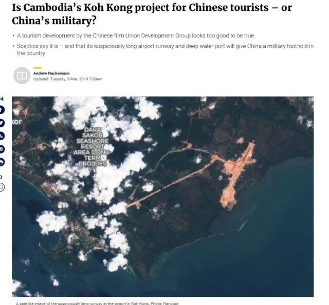 중국 기업이 캄보디아 남서부에 조성 중인 거대 관광단지가 사실상 중국의 군사시설로 활용하기 위한 것 아니냐는 의혹이 일고 있다.