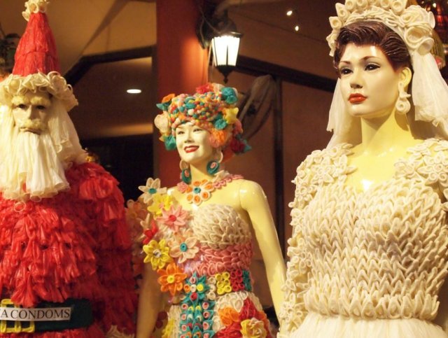 태국의 ‘캐비지 앤 콘돔’(Cabbages and condoms) 곳곳에는 콘돔으로 장식된 마네킹과 장식품이 있다.