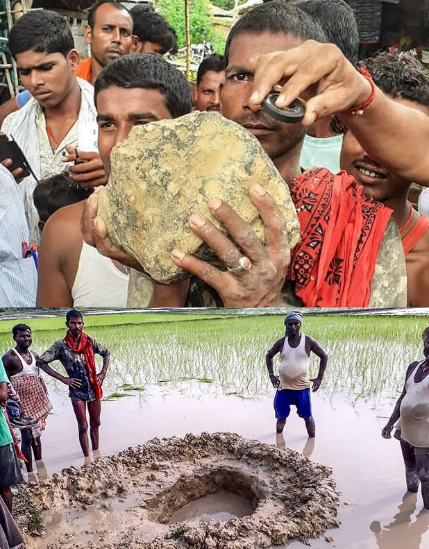 25일(현지시간) 타임스오브인디아 등 현지 매체에 따르면 지난 22일 오후 인도 북부 비하르주 마두바니 지역의 한 논에 15㎏정도 무게의 돌덩이가 떨어졌다.