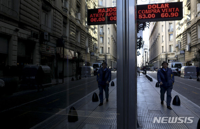 아르헨티나 정부는 지난달 28일 70억 달러 단기 채무 상환을 연기할 계획이라고 발표했다. 이후 29~30일 이틀 동안에만 아르헨티나 외환 보유고에서 30억 달러(약 3조 6000억 원)가 빠져나갔다.