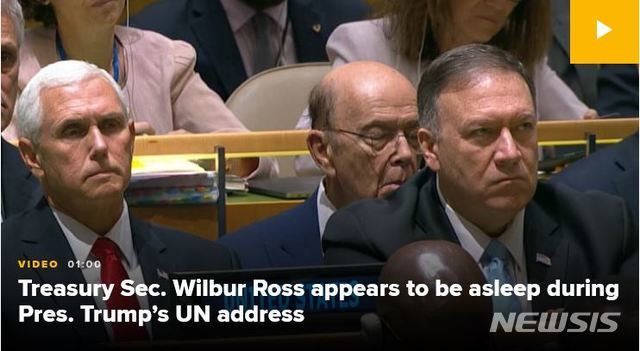 24일(현지시간) CNBC는 트럼프 대통령이 유엔총회 연설을 하는 동안 81세의 로스 장관이 아주 긴 낮잠을 잤다고 보도했다.