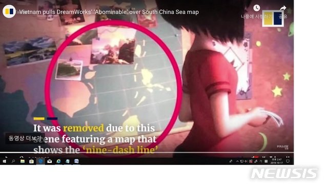 남중국해를 중국 영토로 표시한 지도가 등장하는 미국 드림웍스의 애니메이션 ‘어바머너블’(Abominable·‘끔찍한’이란 뜻)이 베트남에 이어 필리핀에서도 비판을 받고 있다.