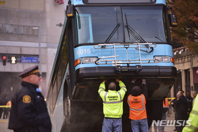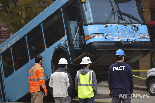 미국 피츠버그 시내에서 28일 아침(현지시간) 출근시간 러시아워에 달리던 시내 버스 한 대가 커다란 싱크홀이 도로에 생기는 바람에 앞 부분이 공중에 번쩍 들린 상태로 정지하는 사고가 발생했다.
