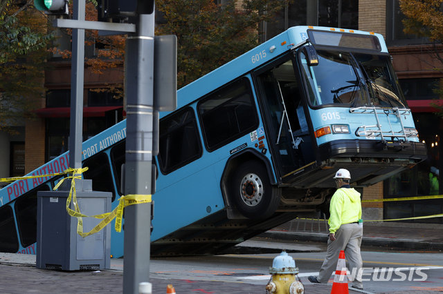 美 피츠버그 도심에 대형 싱크홀…버스 빠져 승객 1명 부상