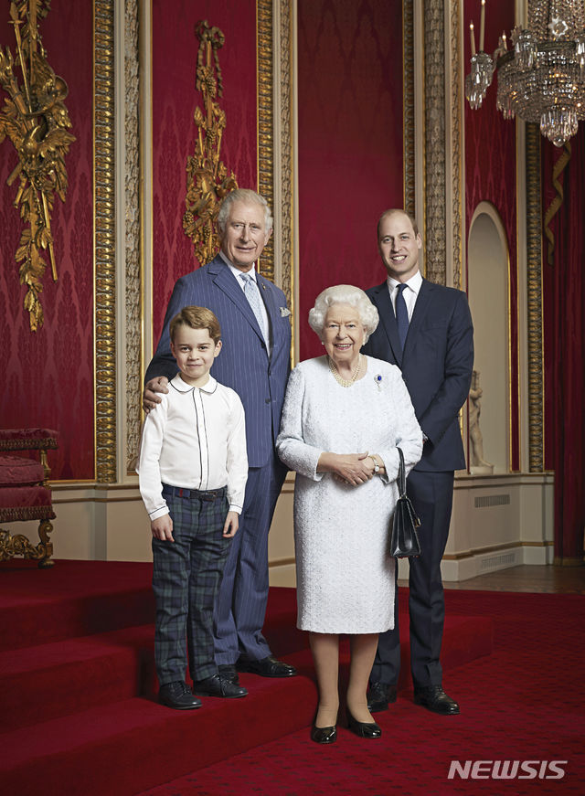 BBC는 3일 밤(현지시간) 버킹엄궁이 새로운 10년을 기념하며 엘리자베스 2세 여왕과 영국 왕위 계승 서열 첫 번째인 찰스 왕세자, 두 번째인 윌리엄 왕세손, 세 번째인 조지 왕자가 함께 촬영한 사진을 공개했다고 보도했다.
