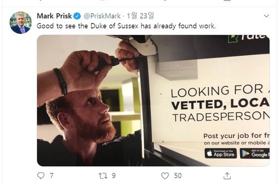 마크 프리스크 전 보수당 의원은 트위터에 “서식스 공작(해리 왕자의 공식 직함)이 벌써 일거리를 찾은 것을 보게 돼서 좋다”고 글을 올렸다.