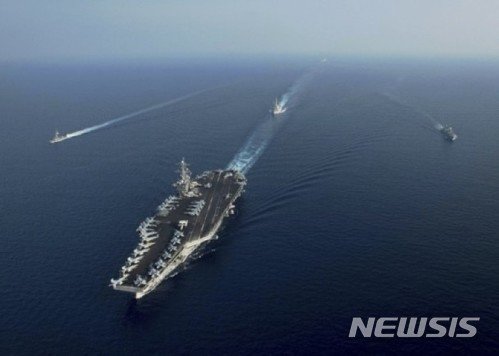 앞서 미국 해군 제7함대는 지난달 15일 시어도어 루스벨트 항모 타격전단과 아메리카 원정 타격전단의 군함과 군용기, 해병대 전투기 등을 서태평양 관할 해역에 보내 고차원의 합동 작전훈련을 실시할 예정이라고 발표했다.