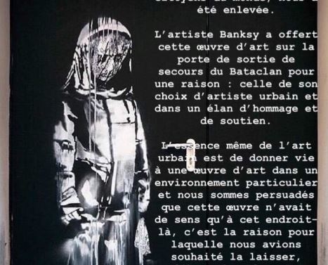 지난해 1월 파리 바타클랑 극장은 세계적인 그래피티 작가 뱅크시가 극장의 비상문에 그린 작품을 도난당했다고 발표했다.