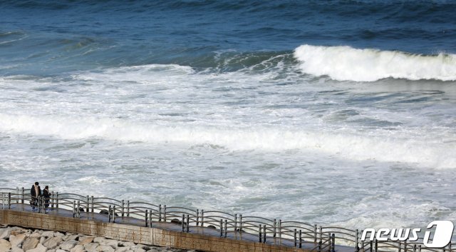 풍랑특보가 발효된 16일 강원 동해바다에서 높은 파도가 밀려들고 있다. 020.3.16/뉴스1 © News1 자료 사진