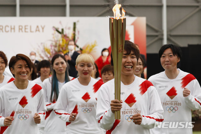 7월 23일 열리는 일본 도쿄올림픽을 향한 성화 봉송식이 이날 오전 9시 열렸다. 당초 일반인 3000명을 초대할 계획이었으나 신종 코로나바이러스 감염증(코로나19) 확산 우려로 올림픽 관계자 160여 명만 참석한 채 진행됐다.