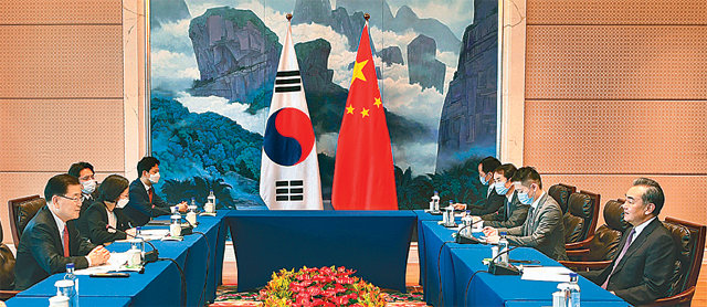 중국은 미국 동맹의 ‘약한 고리’로 평가받는 한국을 집중 공략해 미국의 포위망을 돌파하려는 의도도 드러냈다. 왕 부장은 “중한 경제는 고도로 융합돼 있고 이미 이익공동체가 됐다”며 “5G, 빅데이터, 녹색경제, 인공지능, (반도체) 집적회로, 신재생 에너지 등 협력을 중점 강화하고 (이 분야에서) 질 높은 협력 파트너가 되기를 원한다”고 강조했다. 우리 정부 발표문에 없는 내용이다. 외교부 고위 당국자는 “중국 측이 미중관계에 대한 입장을 아주 솔직하게 얘기했다”고 해 미국에 대한 강한 성토가 나왔을 것으로 보인다.