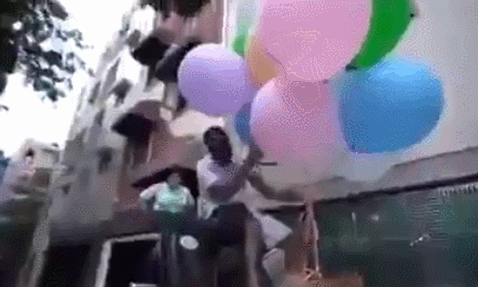 풍선은 인근 건물 2층 높이까지 올라가다가 발코니에서 누군가 붙잡은 듯 멈췄다.