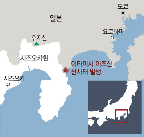 3일 기록적인 폭우로 산사태가 발생한 온천마을 시즈오카현 아타미시는 하루아침에 재난 현장이 됐다. NHK 교도통신 등 일본 언론들에 따르면 이 사고로 현재까지 2명이 사망하고 20여 명이 실종된 것으로 알려졌다. 산사태로 피해를 입은 건물은 130여 채, 127세대에 달하는 것으로 나타났다. 그러나 시즈오카현 등 당국은 실종자 규모를 정확히 파악하고 있지 않아 향후 피해가 더 늘어날 가능성도 배제할 수 없는 상황이다.