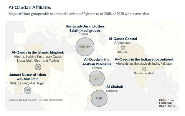 알카에다·연관 단체 세력 분포도. 미국외교협회(CFR) 홈페이지 갈무리. © CFR
