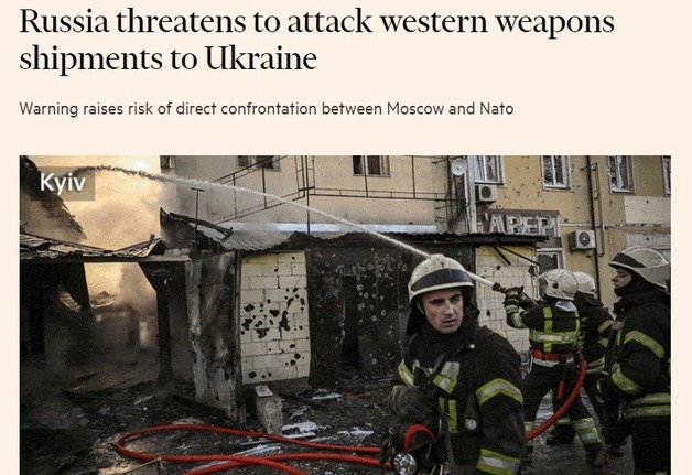 러시아가 우크라이나를 지원하는 무기를 실은 수송선을 공격하겠다고 밝힘에 따라 러시아와 나토(NATO, 북대서양조약기구)간 직접 충돌가능성도 배제할 수 없게 됐다고 영국의 파이낸셜타임스(FT)가 13일(현지시간) 보도했다.