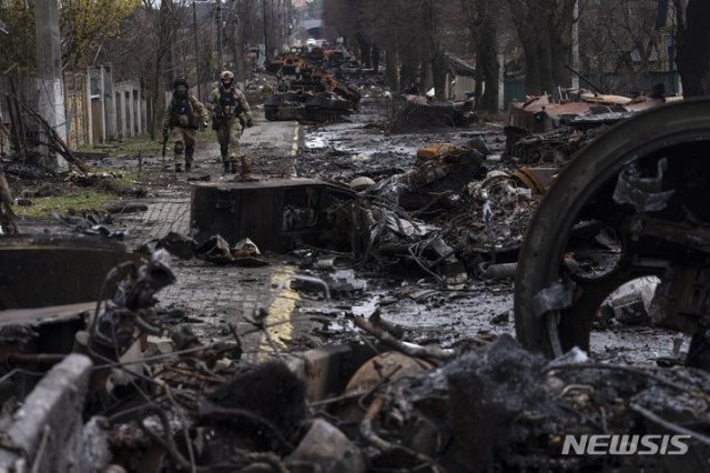 우크라이나 검찰은 전쟁범죄 입증을 위해 시신 410구 중 150여 구를 수습해 부검에 나섰다. 안토니우 구테흐스 유엔 사무총장도 이날 성명을 내고 “책임 규명을 위해 독립적인 조사가 필수적”이라고 밝혔다. 국제형사재판소(ICC)는 러시아를 전쟁범죄로 처벌하도록 지원하기로 했다. 러시아는 “미국의 명령에 따른 음모론” “우크라이나 정부의 연출극”이라며 부인했다.